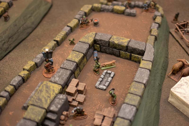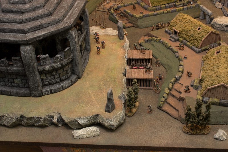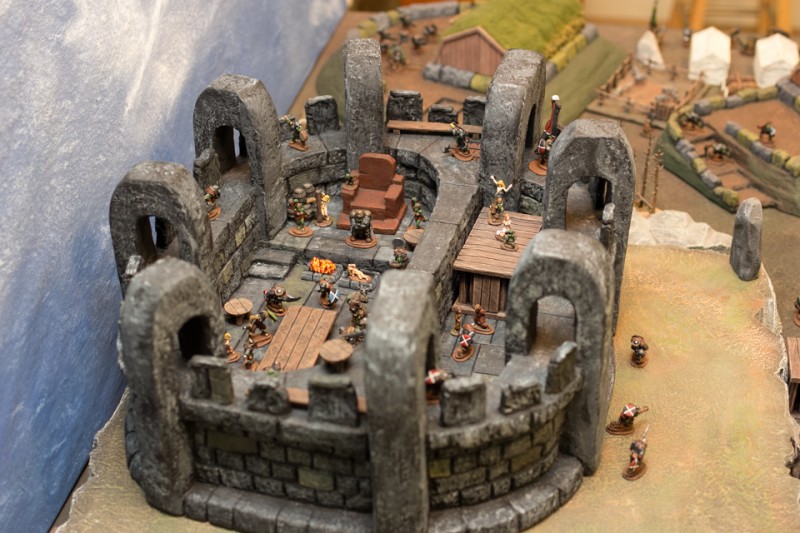 LNHC06 The great stone fortress of Dalthu dominated the orc settlement. Eskander was challenged by a unit of heavily armored orcs. The Hertog of Hertogs Torkag commanded great respect from his orcs and swore none would harm Eskander.